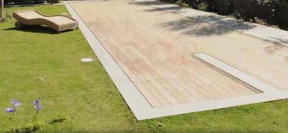 Setelah melihat ini pasti kalian bakalan kagum. Tampak luar, memang terlihat seperti halaman kebun biasa, namun kita bakalan kagum, saat kayu-kayunya turun secara otomatis dan menjadi sebuah kolam renang yang indah.