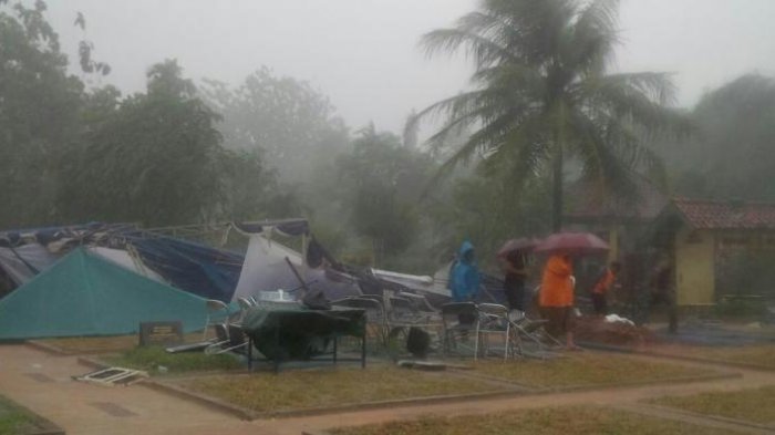 Saking kencangnya, tenda yang berdiri di area pemakan Sutan jenazah pun turut ambruk tertiup angin.