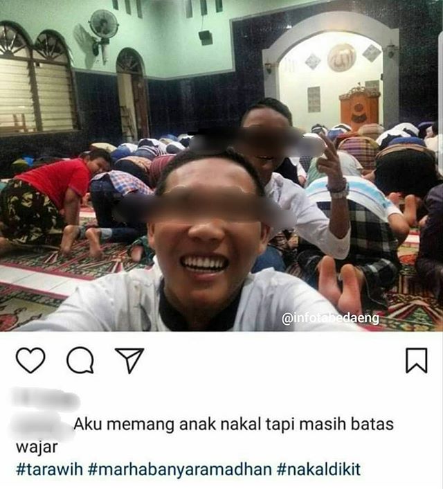 Di foto yang diunggah tersebut tertulis kata-kata "Aku memang anak nakal tapi masih batas wajar" dengan tagar 'tarawih'.