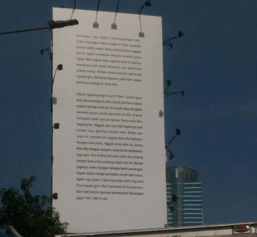 Asli ini iklan terbagusnya @gojekindonesia sumber grup ahensi," tulis akun @supersakid yang mengunggah foto baliho iklan tersebut.