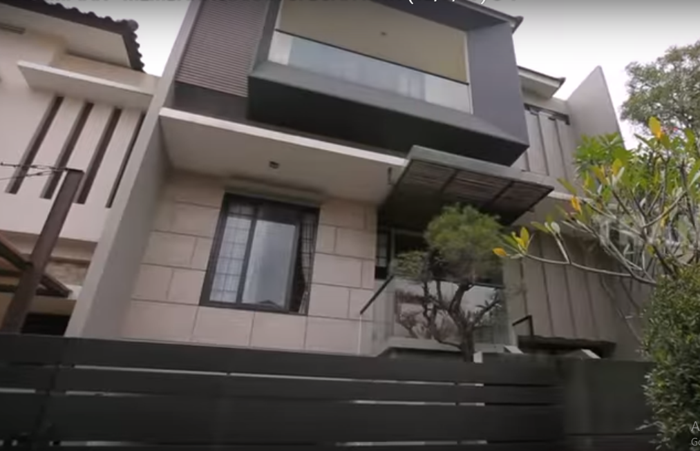 Rumah yang menggunakan gerbang yang aman untuk menjaga rumah. Tumbuhan yang berada di dalam maupun luar rumah sangat subur dan indah.