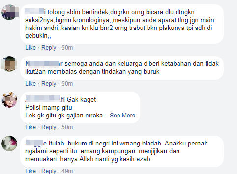 Lalu keluarga saya datang dan terkejut.dan saya bilang tolong saya saya bukan pelakunya,lalu keluarga melaporkan kejadian ini ke PROPAM POLDA SUMSEL.tp hasilnya nihil... Seperti tidak ada tanggapan sama sekali dalam kasus ini. Ya saya berpikir institusi kepolisian ngak mungkin menyalakan institusinya sendiri...Berbagai cara sudah saya lakukan memohon bantuan hukum meminta keadilan.sampai menulis memakai kertas nasi bungkua untuk dewan anggota DPRD SUMSEL bpk HENDRI ZAINUDIN.Begitu juga hasilnya.