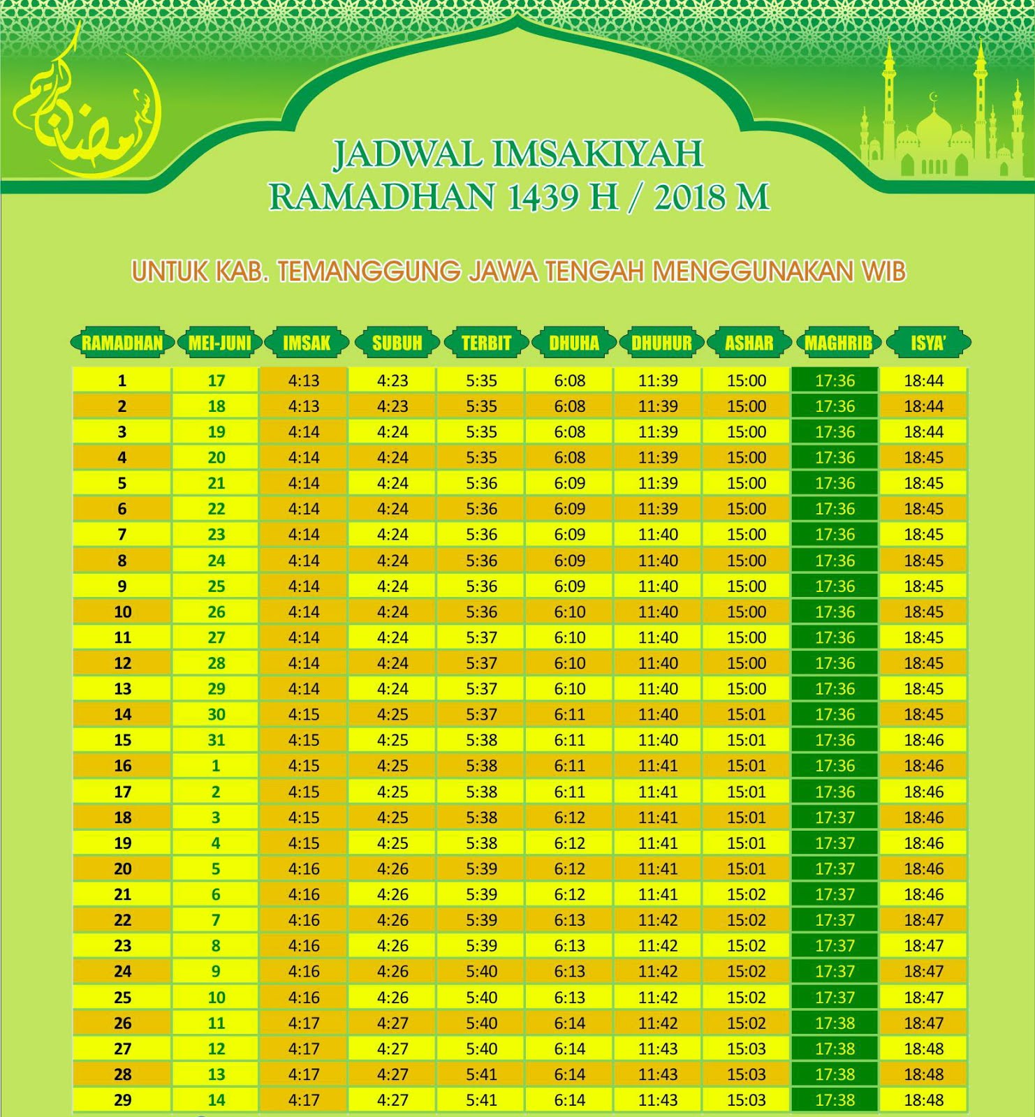 Jadwal Imsakiyah Temanggung 2018 hari ini