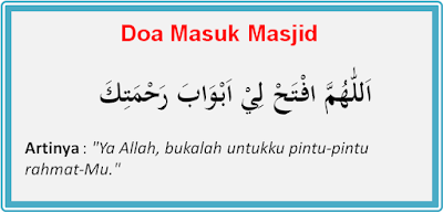 "Jika salah seorang di antara kalian memasuki masjid, maka ucapkanlah, 'Allahummaftahlii abwaaba rahmatik' (Ya Allah, bukakanlah pintu-pintu rahmat-Mu). Jika keluar dari masjid, ucapkanlah: 'Allahumma inni as-aluka min fadhlik' (Ya Allah, aku memohon pada-Mu di antara karunia-Mu)." (HR. Muslim 713)