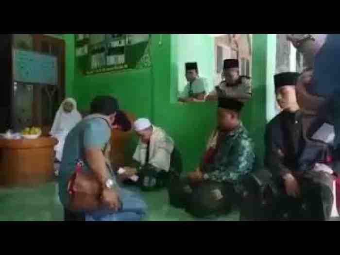 Dalam video tersebut, tampak seorang pria yang merupakan wali murid salah satu santri mengamuk dan memarahi ustadz yang menggunakan peci putih.
