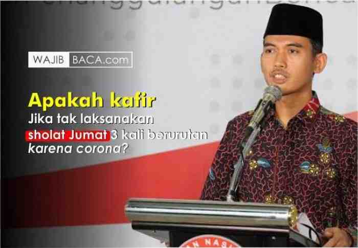 Ada kekhawatiran pada umat Islam, khususnya yang lelaki jika meninggalkan sholat jumat 3 kali akan di cap kafir. Lantas bagaimana jika meninggalkannya karena wabah, apakah sama?