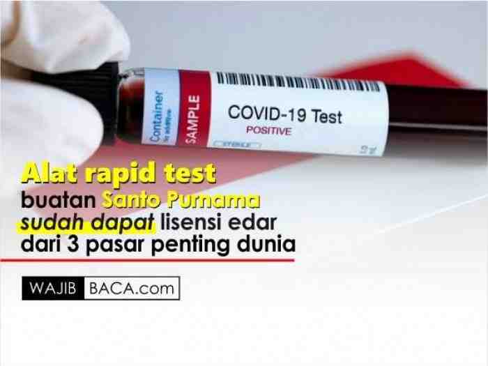 Santo Purnama merupakan salah satu wirausaha Indonesia yang berhasil mengembangkan rapid test Covid-19 secara mandiri.
